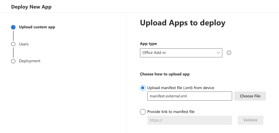 To deploy the CipherMail Outlook add-in, follow these steps: