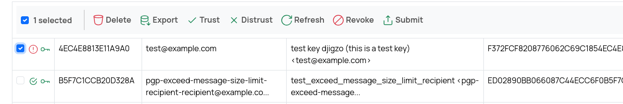 The trust of a key can be managed by selecting a key and then select Trust or Distrust.