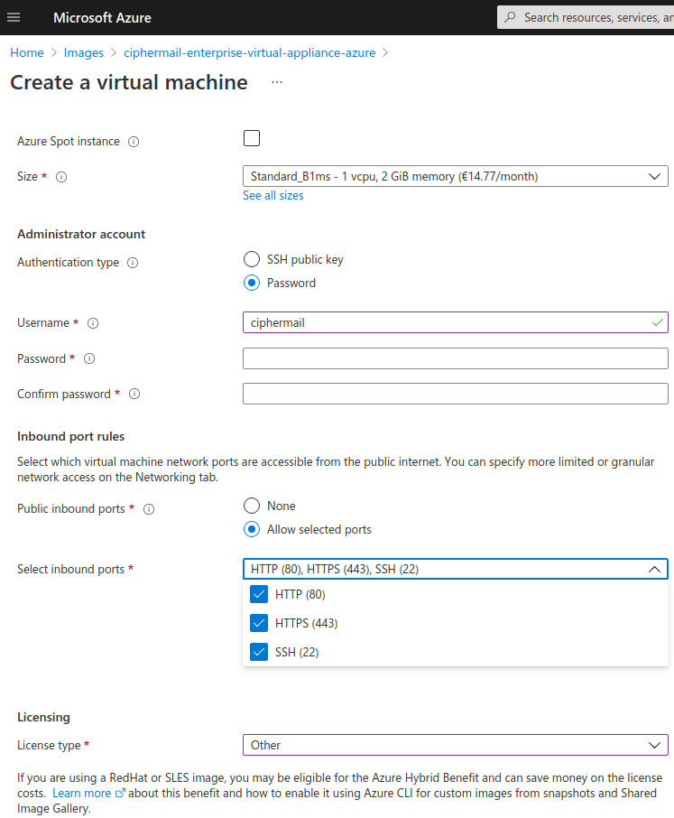 Download the Azure virtual appliance from https://portal.ciphermail.com.
