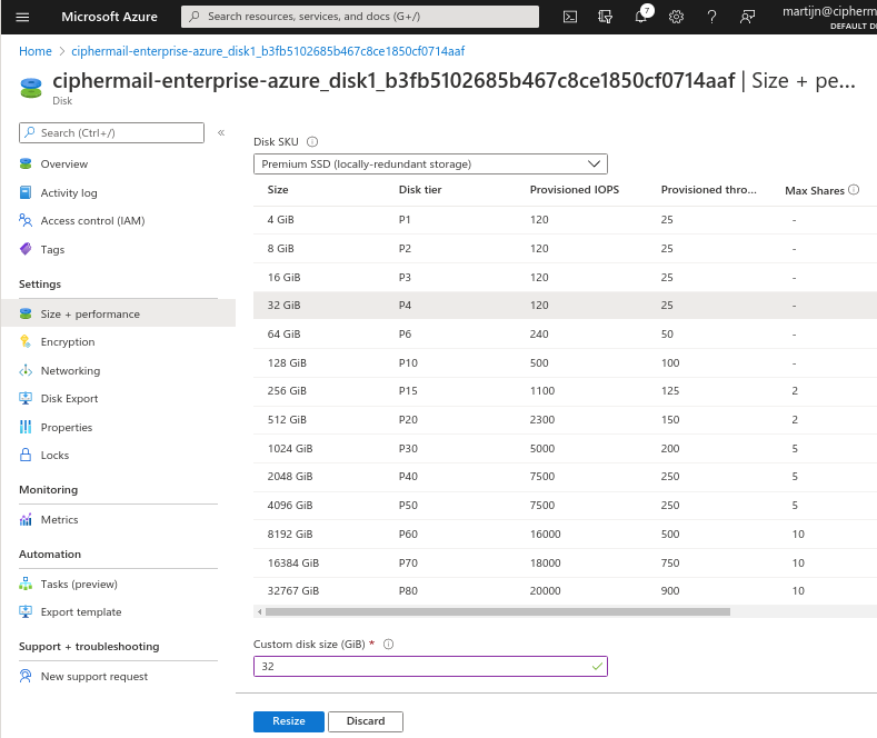 By default the image uses a 5GB disk. For most setups this is too small. The disk should therefore be resized.