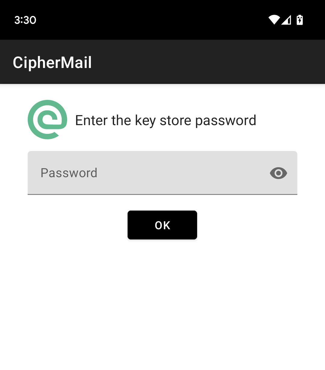 Ciphermail for Android will always ask you for the keystore password when it accesses the keystore.